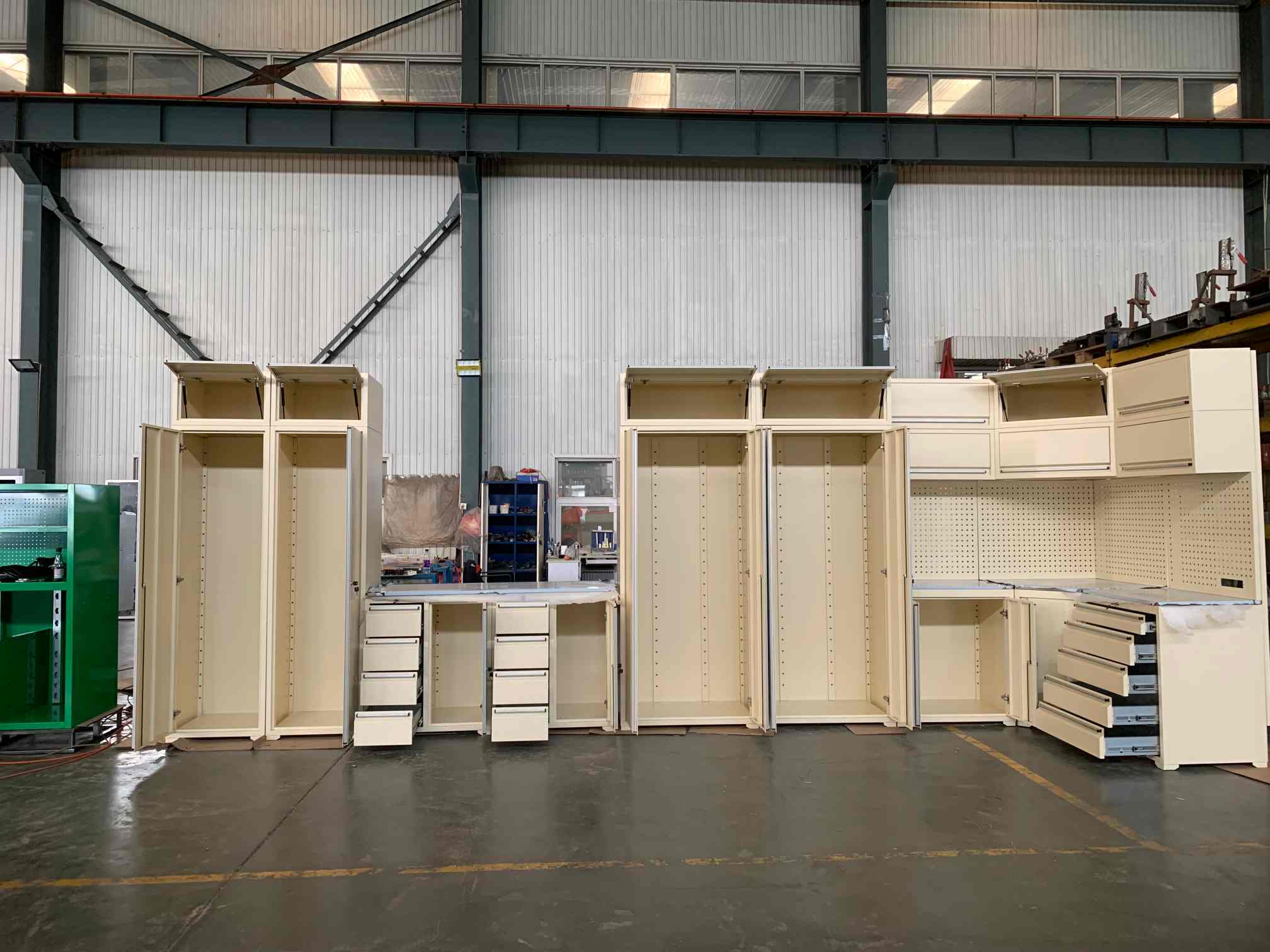 ツールキャビネット、ツールワークベンチ、ガレージキャビネット、ツールピットカート、ツールボックス、チェストアクセター、コンテナハウスなど。